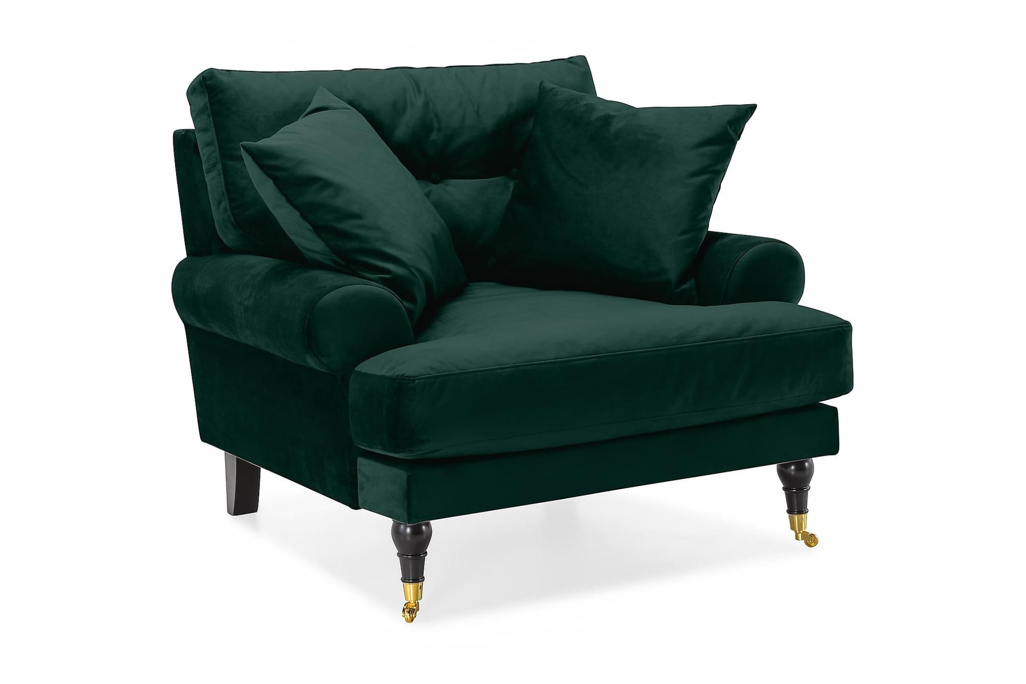 Andrew er en skøn og komfortabel lænestol i blød velour, som vil være et smukt indslag i dit hjem. Den har stilfulde og gennemførte detaljer som messinghjul og smukt formede ben. Lænestolen har en stabil ramme af massivt træ og ekstra brede siddehynder me