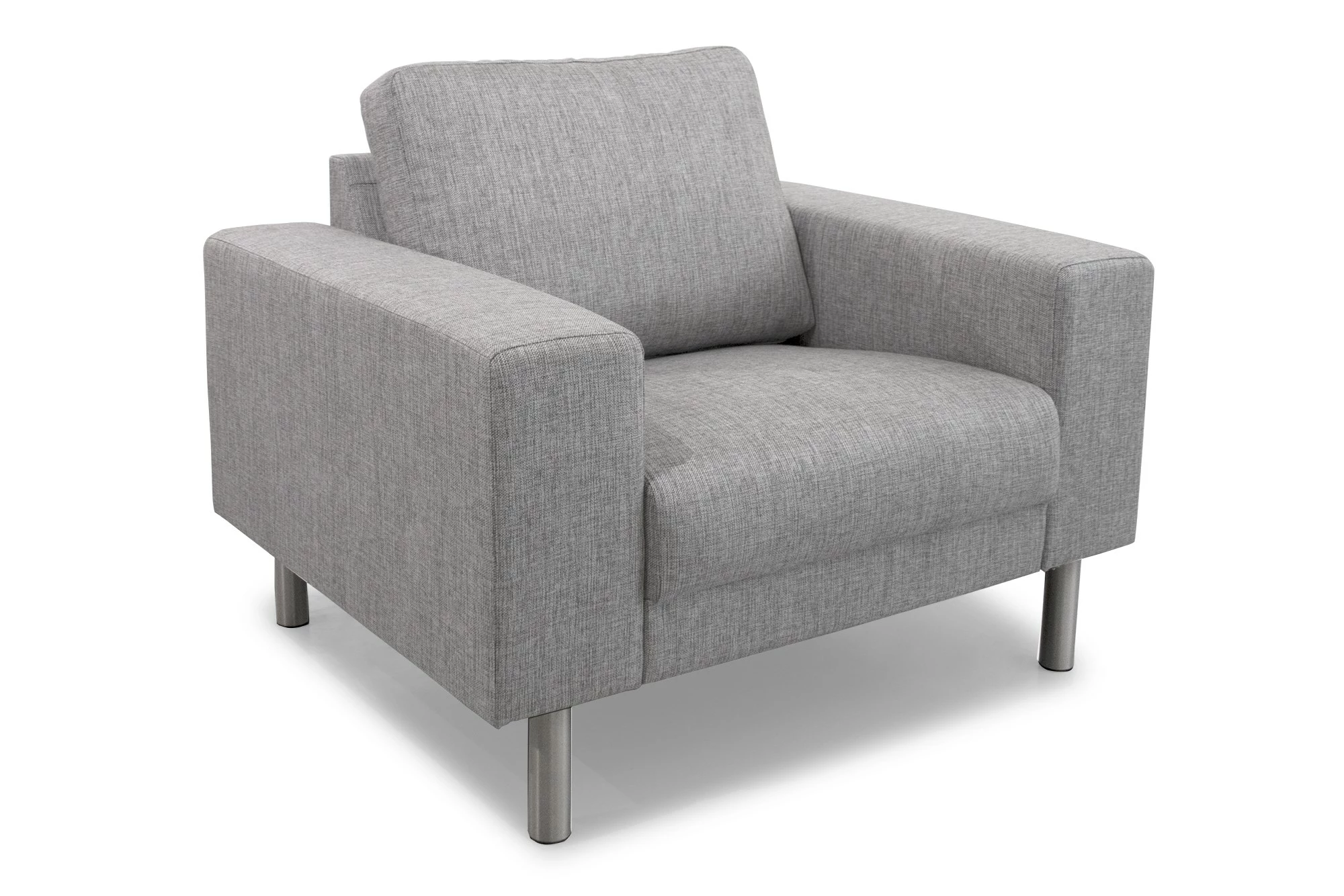 Vores Barcelona lænestol er den perfekte stol til den stilrene stue. Lænestolen er monteret med slidstærkt lysegråt betræk med metalben. Stolen har en højde på 86 cm, en dybde på 85 cm og en længde på 105 cm. Hvis du ønsker en puf til at kunne hvile benen