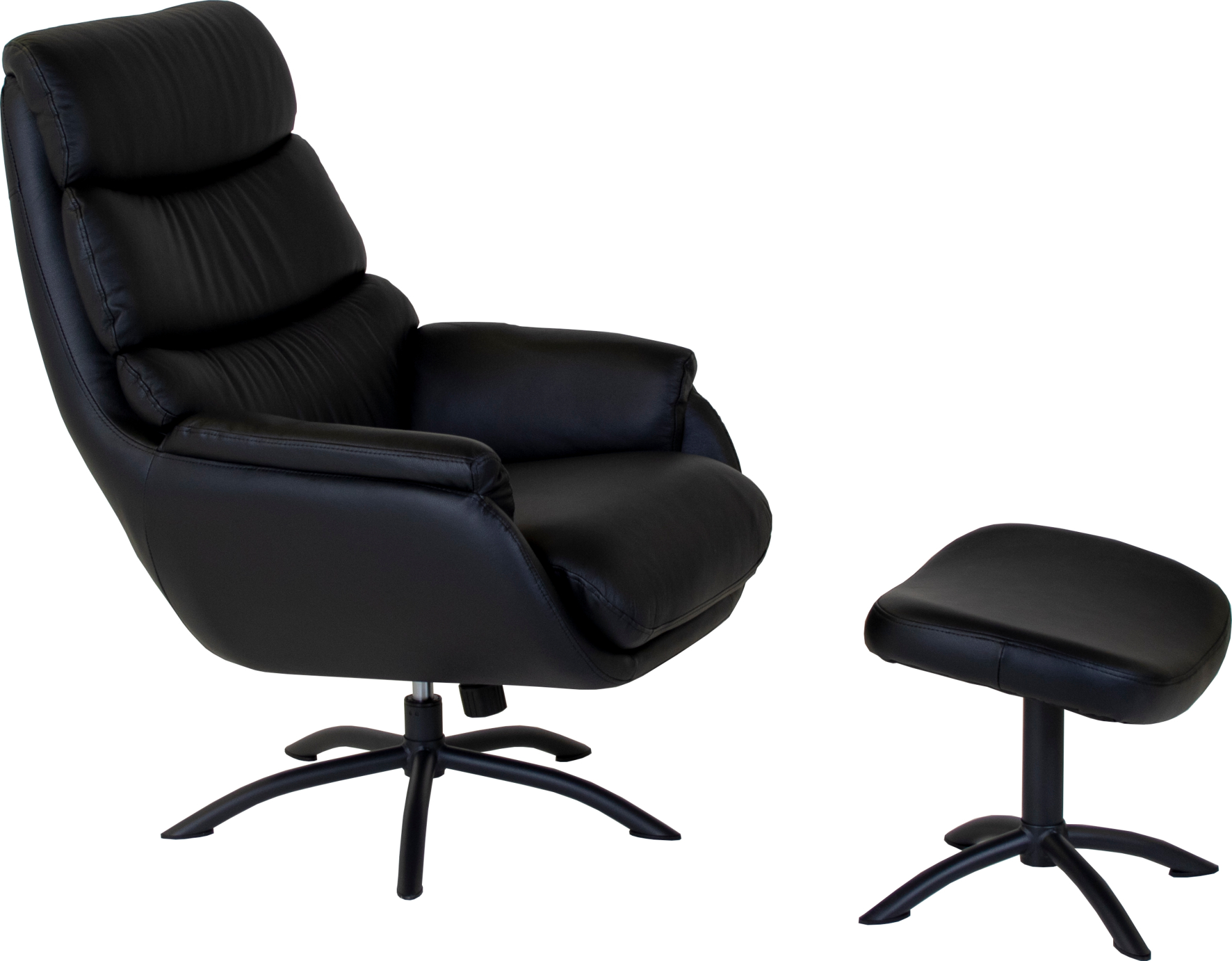 Lænestol med fodskammel monteret med læder på alle slidflader. Med drejefuntion og vippefunktion. Sort lakeret metalstel. Se alle vores lænestole her. Vedligeholdelse Husk at møbler skal plejes og vedligeholdes for at sikre længst mulig levetid. Under fan