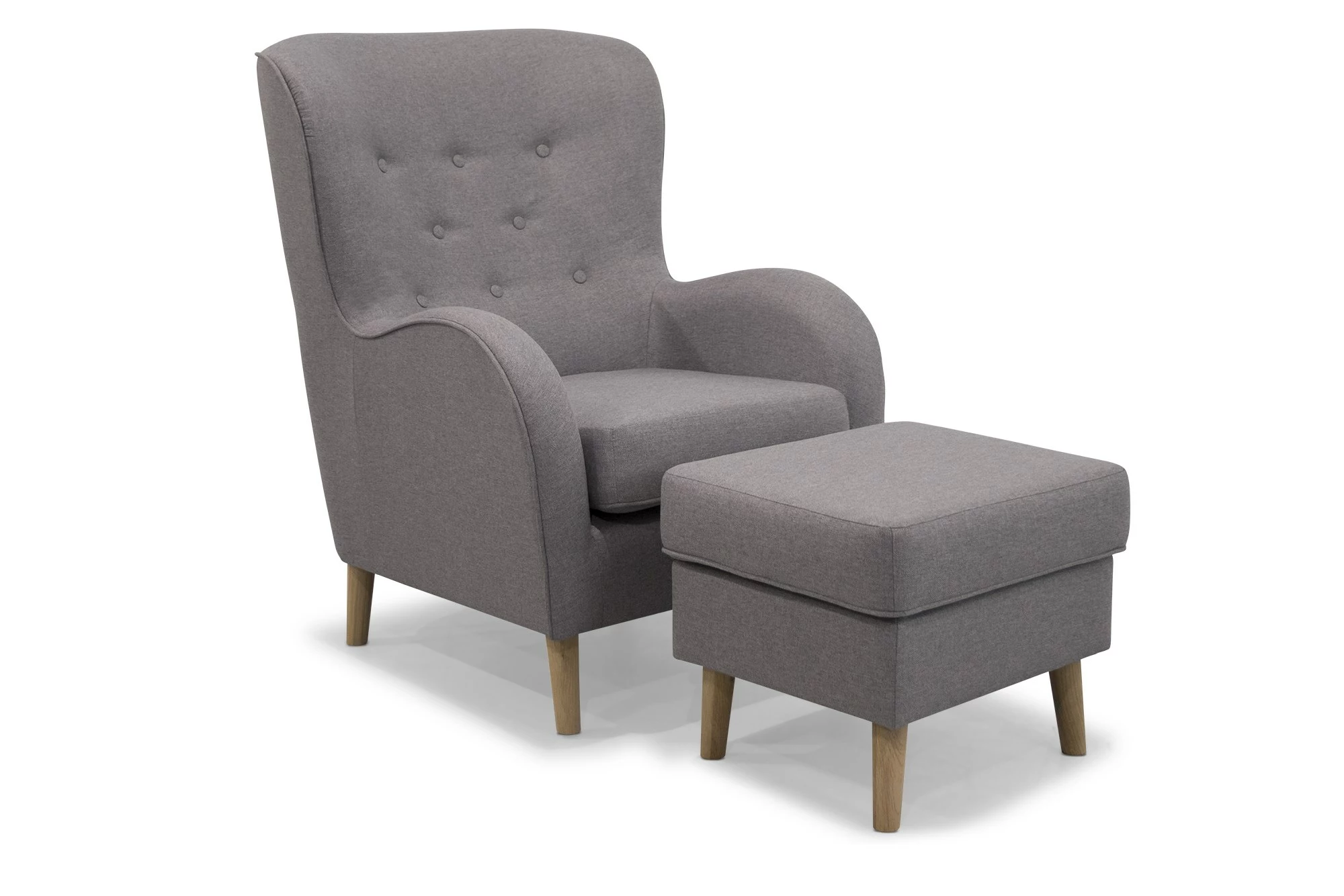 King stolen er en flot, klassisk lænestol monteret med slidstærkt betræk og koldskumdsindlæg samt ben i ubehandlet bøg. Fodskamlen er udført i samme lækre design. Med dette sæt får du en skøn lænestol med tilhørende skammel, så du for alvor kan slappe af.