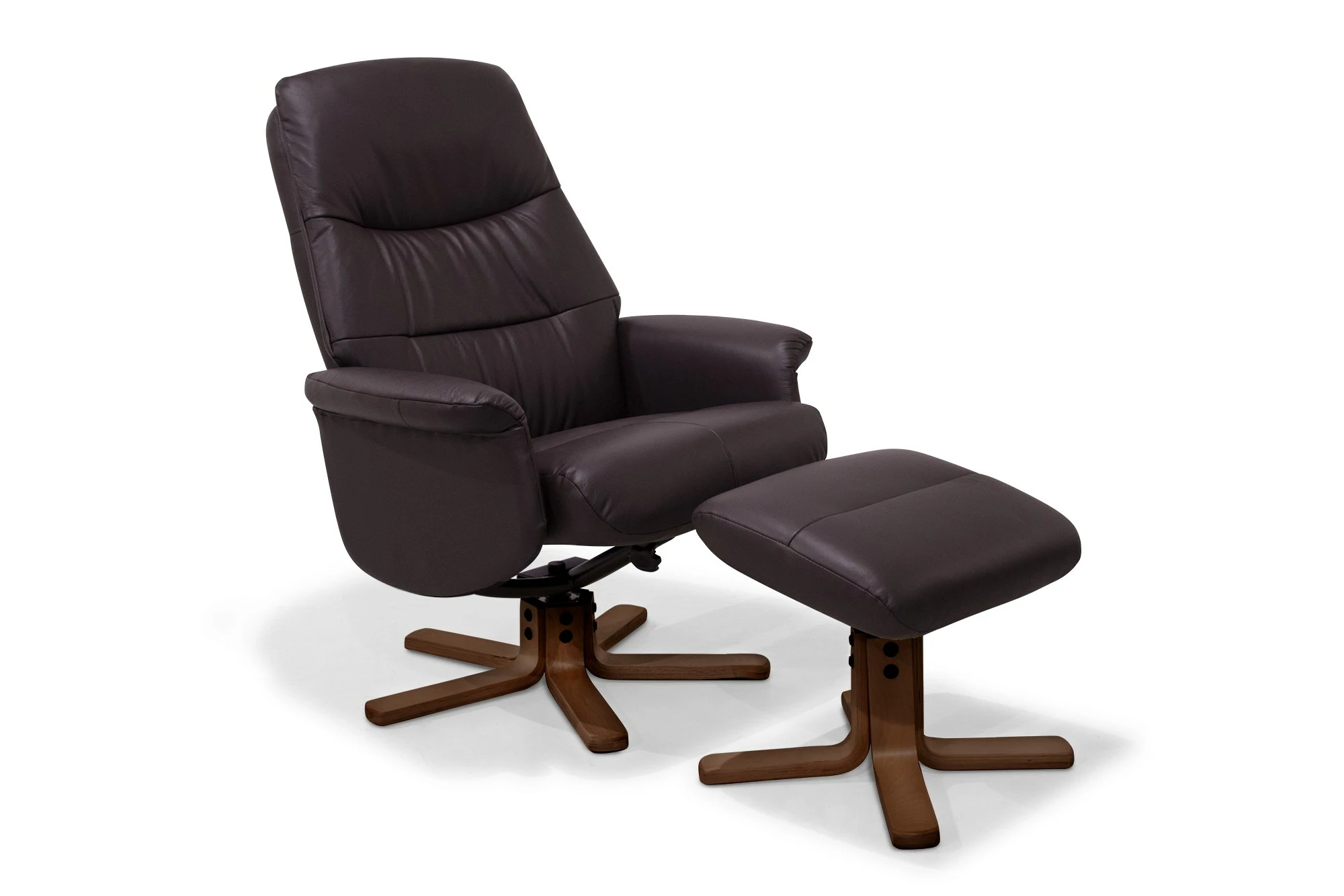 Living lænestol er en flot højrygget lænestol med fodskammel. Lænestolen er monteret med brunt okselæder på alle slidflader. Der er trinløs regulerbar ryg samt justerbar nakkefunktion. Derudover har stolen en massiv maghonifarvet drejesokkel. Living lænes
