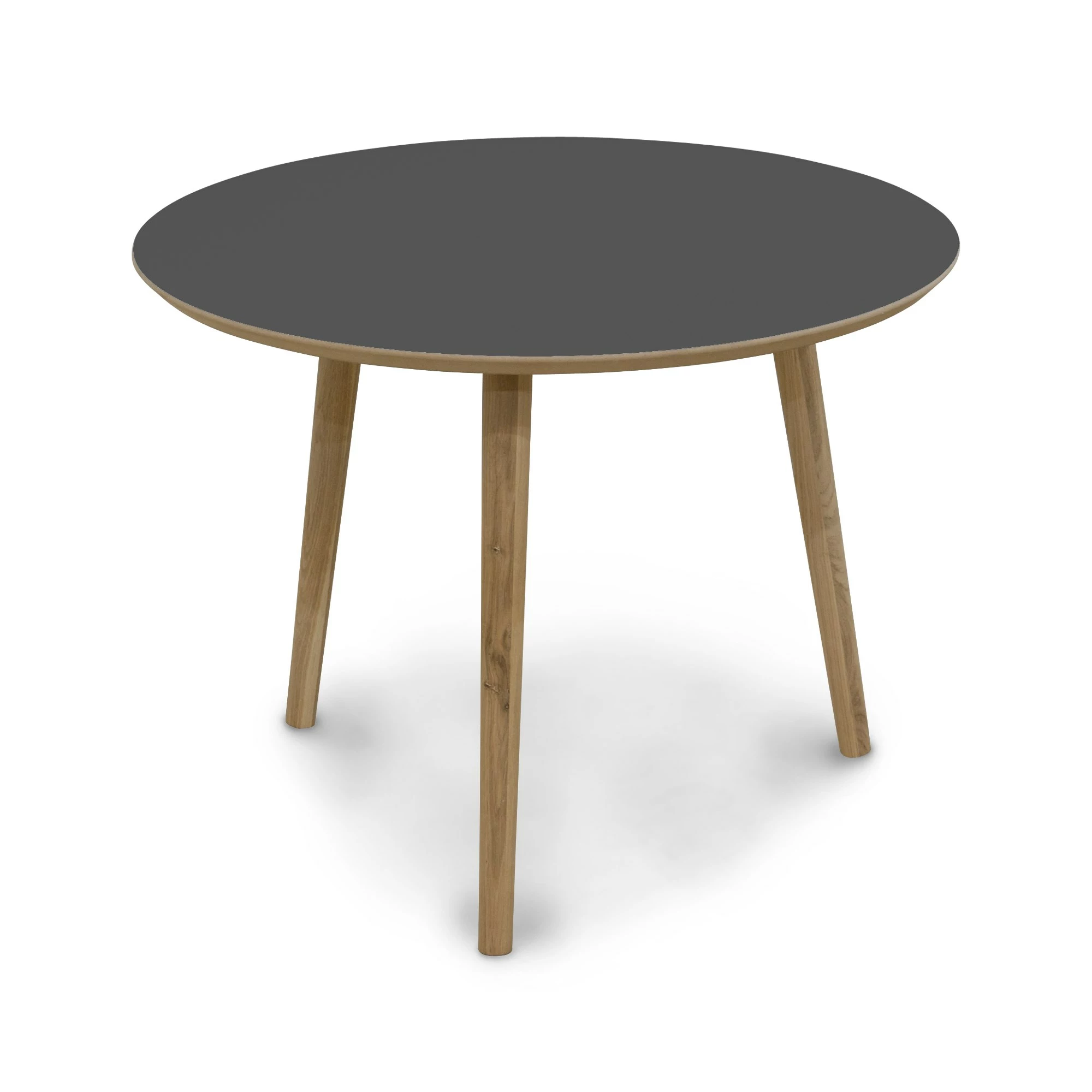 Flot rundt sofabord i sort højtrykslaminat med massive egetræsben i et trendy design. Sofabordet vil passe ind i stort set alle hjem uanset stil og farvevalg. Bordet måler 47 cm i højden, 55 cm i dybden og 55 cm i længden. Mikado-serien fås i flere modell