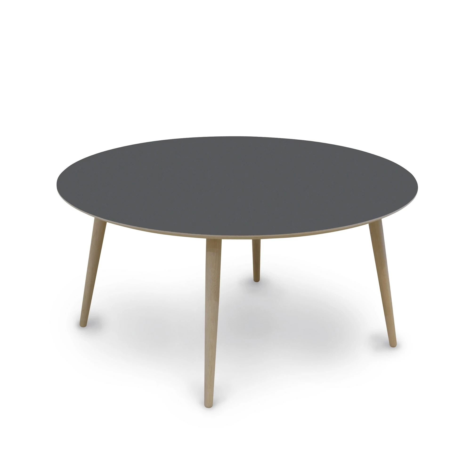 Flot rundt sofabord i sort højtrykslaminat med massive egetræsben i et trendy design. Sofabordet vil passe ind i stort set alle hjem uanset stil og farvevalg. Bordet måler 50 cm i højden, 90 cm i dybden og 90 cm i længden. Mikado-serien fås i flere modell
