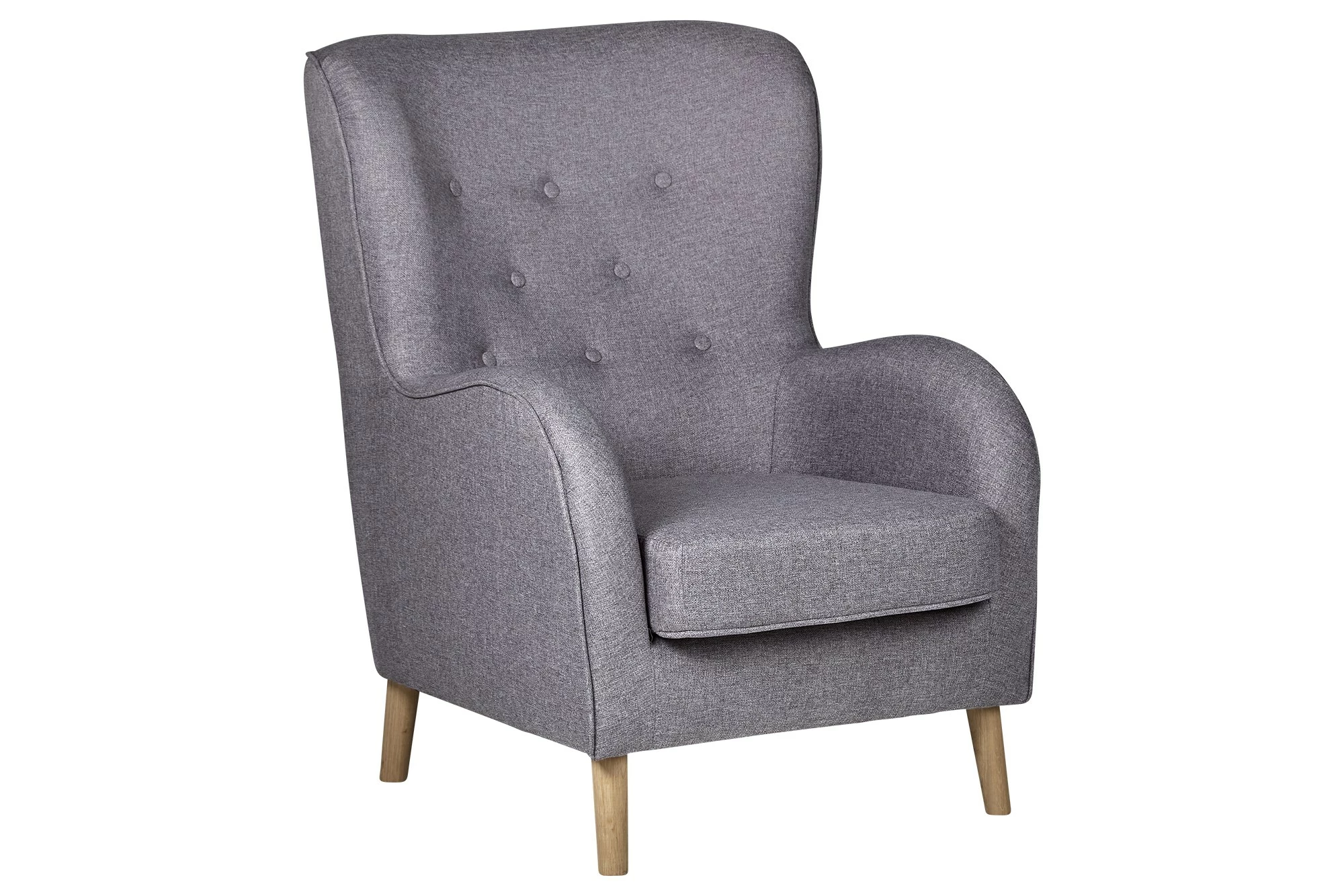 Skøn hvilestol i en smuk grå farve. Stolen er monteret med knapper, som er med til at give stolen et særligt udtryk. Derudover har lænestolen massive egetræsben. Ønsker du en skammel til stolen, kan du købe en matchende her. Lænestolen måler 100 cm i højd