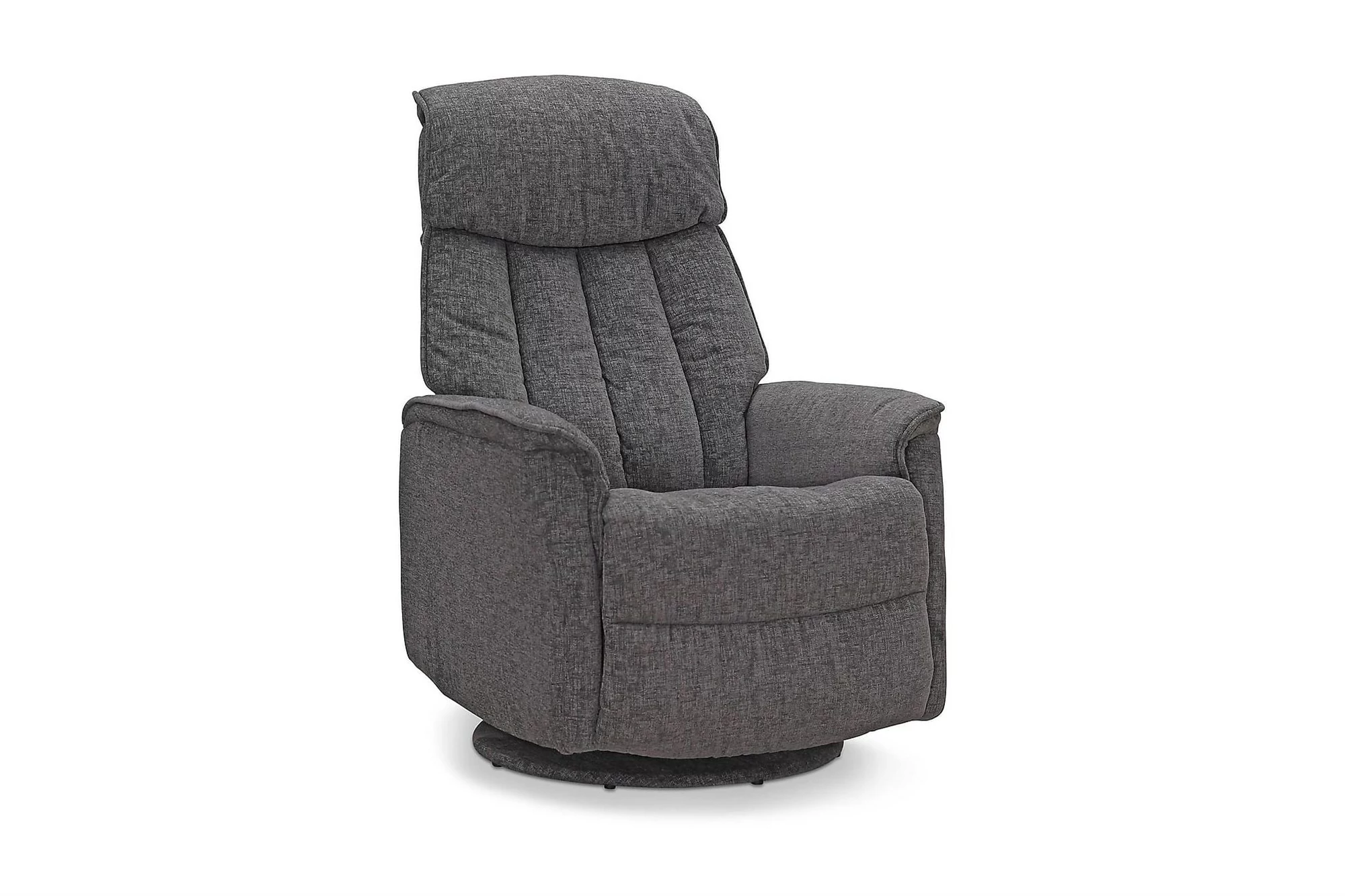 Læn dig tilbage og tag en tur i denne yderst behagelig lænestol med rotation- og vippefunktion. Stolen er beklædt med et tykt og blødt stof. Den er derudover monteret med et robust stel, som er fremstillet af træ og stål. Du kan derfor være sikker på, at